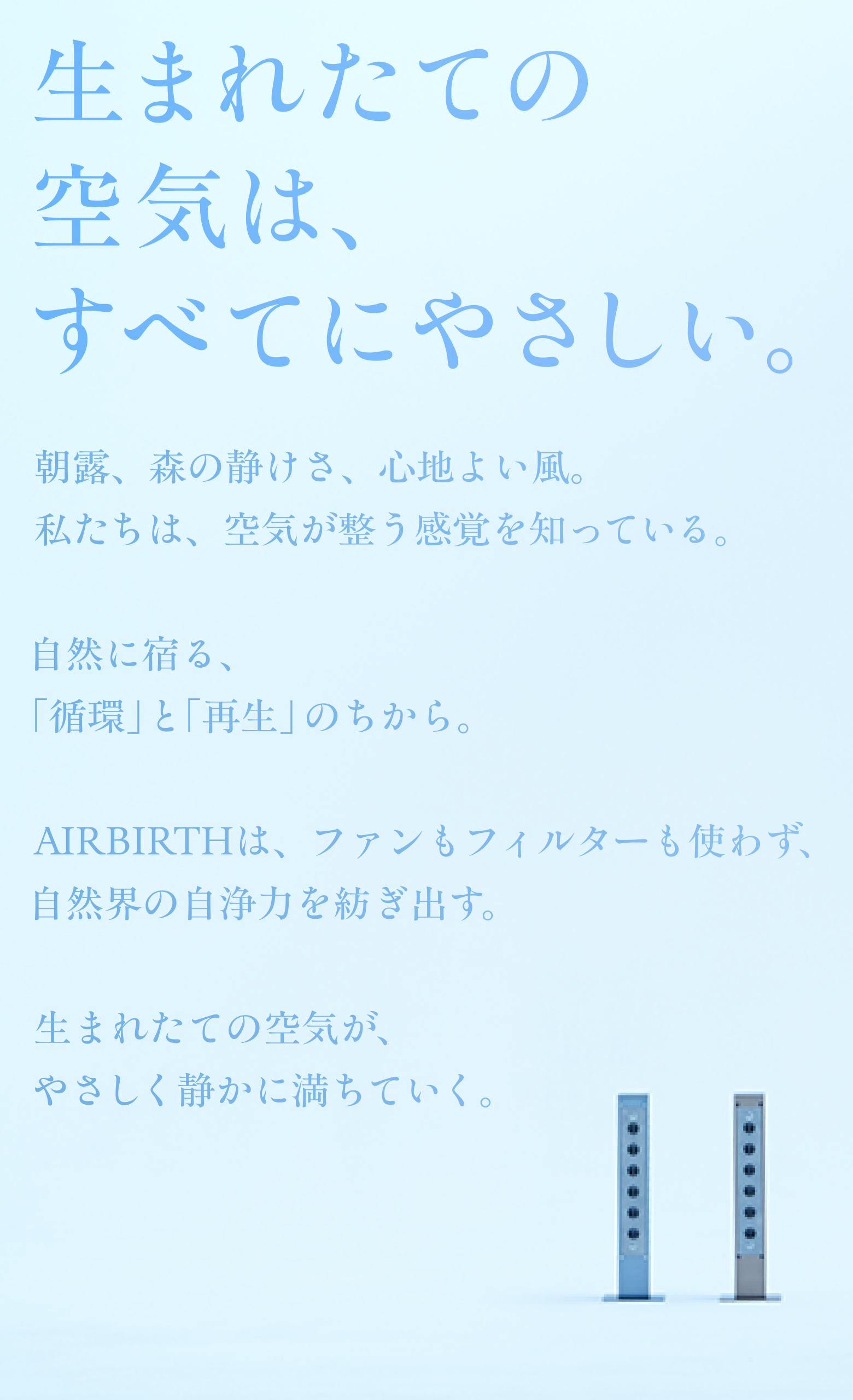 AIRBIRTHは、独自の仕組みによって空間にやさしく働きかけます。